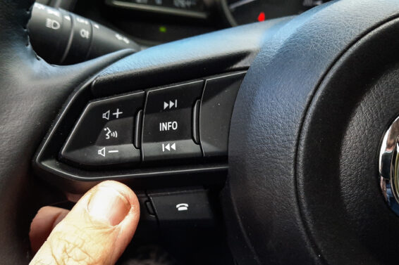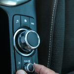Osetljiv je na dodir samo u stanju mirovanja, u protivnom mora se poslužiti „džojstikom“ između sedišta. Nije nepraktičan, štaviše, tako pozicioniran lako je dostupan i suvozaču, uz praktično dugme, tj. potenciometar za jačinu zvuka. Upoređujući fotografije urađene pre par godina zaključujem da je centralana armatura neizmenjena, ali Mazda je podigla nivo kvalitela upotrebljenih materija, preciznije plastike.