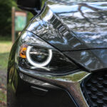 Šta je dakle novo? Na prvi pogled baš ništa, no kada se malo bolje zagledamo u prednji deo možemo uočiti da su izbačena svetla za maglu, a da je prednja maska nešto veća i razvučenija. E da, Mazda 2 uspešno je rođena, teško je na njoj nešto značajnije izmeniti. Da pripada familiji Mazda jasno je već na prvi pogled (Kodo stil), gde do izražaja dolazi prepoznatljiva prednja maska, „oštar“ pogled (svetla u kombinaciji LED/Xenon) i snažni bokovi. I dok ostali proizvođači u B segmentru daju akcenat na kompaktnosti i praktičnosti, Mazda je sebi dozvolila da mnogo toga žrtvuje u korist stila. Odavno nismo videli toliko dugu haubu kod jednog mališana ovog gabarita, niti tolike prelaze preko prednjih točkova.