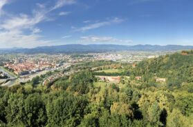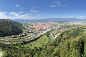 Kratko razgledanje centra grada završilo se u restoranu, gde smo se gostili piletinom sa mlincima, još jednim poznatim specijalitetom ovoga kraja, koji se morao zaliti lokalnim pivom „Laško“.
