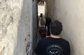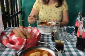 Prilično nas je iznenadio njihov opušten odnos prema nošenju maski na javnim mestima, budući da je u to vreme Mađarska imala najmanji broj zaraženih u Evropi. To nas nije sprečilo da uživamo šetajući kaldrmisanim uličicama Sentandreje (fotografije ispod ovog pasusa), a pozno letnje sunce nas je nateralo pod ogromnu krošnju u baštu srpskog restorana na obali rukavca Dunava, gde smo, kad već ne možemo u Srbiju, uživali u poznatim domaćim specijalitetima sa roštilja: ćevapima i punjenim pljeskavicama.