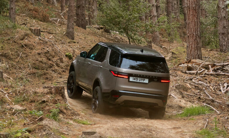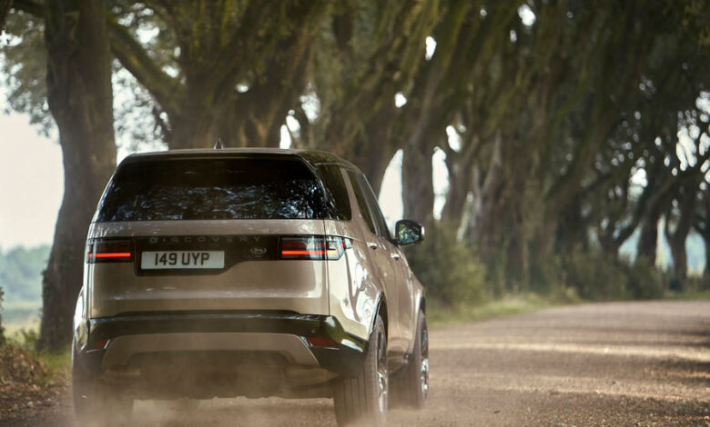 Pozadi vidimo novu svetlosnu grupu i crni plastični panel na kojem stoji naziv „Discovery“. Interesantno je da Land Rover nije našao za shodno da izmeni lokaciju predviđenu za zadnju registracionu tablicu, koja je i dalje asimetrično postavljena. Britanska marka dodala je novi trim R-Dynamic koji donosi nekoliko vizuelnih promena, pre svega crni krov visokog sjaja, a istu takvu boju imaju i prednja rešetka i oplate iznad točkova…