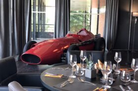 U lobiju restorana ponosno stoji originalni crveni Maserati „250 F“, bolid koji je „El Maestro“ koristio davne 1954. godine, kada je, po drugi put, osvojio svetski šampionat. Šteta je što, uz odličan srednje pečen odrezak i izvrsno francusko crno vino, gosti restorana ne mogu da čuju zvuk tog linijskog „šestaka“ za desert.