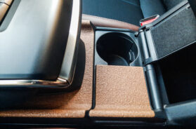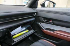 Kod MX-30 za tako nešto mogu poslužiti dva udubljenja za limenke, ali su smeštena prilično unazad i pokrivena poklopcima od navedene plute. Sva sreća ispod te tanke centralne konzole pronađoh „kengurovu torbu“ (isto tako obložena plutom i osvetljena), gde su ujedno i dva USB priključka. Velike je zapremine ali skriven od pogleda, tako da će te mobilni telefon, ukoliko ste ga tu ostavili, sigurno zaboraviti.