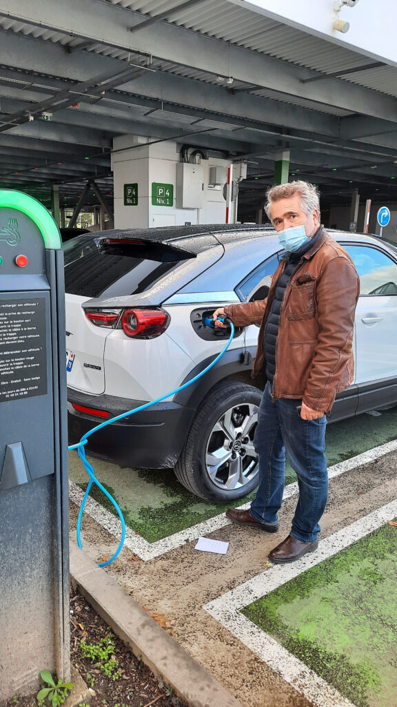 Prvi utiskak je znači pozitivan, lep je osećaj za upravljačem MX-30, čak i kada se poželi temperamentno voziti. Uzevši u obzir da sam već drugog dana test vožnje skoknuo do mog omiljenog tržnog centra u blizini, gde sam za nekih 2 sata dopunio baterije do vrha (besplatni punjači od 7,4 kWh), dozvolih sebi slobodu da „zapucam“ na malo duži put. Za početak kroz predgrađe Pariza, a zatim putevima drugog reda, s rasponom brzine izmedu 50 i 90 km/h. Gotovo idealni uslovi, što dokazuje i putni računar (potrošnja od nepunih 15 kWh), po njemu mogu prevaliti i više od 200 km. Naravno pod uslovom da ekonomišem i ne preterujem s grejanjem, odnosno da pazim kako vozim i maksimalno rekuperiram energiju, malim ručicama pored upravljača.