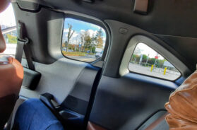 Naravno da sam se smestio i na zadnju klupu kako bi proverio raspoloživ prostor, posve prihvatljiv za svakodnevno putovanje osobe mog „kalibra“ (1,72 m). Mnogo više vremena na njoj provela je gospođa Rajković, gde se „skrivala“ od kontrole policije? Da razjasnim, zbog spomenutih vanrednih mera i policijskog časa, prilikom deplasiranja radi nabavke neophodnih namernica ili nekog drugog izlaska, autorizovana je samo jedna osoba u vozilu. Na zadnjoj klupi moju „smol“ suprugu teško je uočiti, osim što su stakla snažno zatamnjena, prozori su mali kao u avionu. Tek da se zna, na zadnjim vratima zakačeni su pojasevi za prednja sedišta, zbog čega su ova ojačana i u funkciji B stuba. Samim tim okvir je previše širok i smanjuje bočnu preglednost. Uvek se moraju prvo ona zatvoriti, zatim i prednja, obrnuto ne funkcioniše.