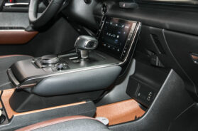 Generalno uzevši kvalitet enterijera je za pohvalu, na moje poznanike utisak su ostavili i ekrani. Pored centralnog, na gornjem delu centralne konzole (8,8 inča u 16:9 formatu), tu je još jedan u funkciji instrument table, dok je treći posve nesvakidašnji, isključivo namenjen za klima uređaj i grejanje. Nalazi se pri dnu centralne konzole, ispred ručice menjača, i kao takav deluje mi zgodan za manipulisanje. Zapravo cela ta konzola s „bombastom“ ručicom menjača, retko je elegantna i dopadljiva na oko. Na njoj pronalazimo isti „džojstik“ kao i kod ostalih modela kuće, s kojim se upravlja centralni ekran (nije osetljiv na dodir). Problem nastaje kada se spontano poželi odložiti mobilni telefon ili ključevi, navedeni ekran zauzeo je mesto koje većina proizvođača koristi kao udubljenje za sitnice ili bežično punjenje smartfona.