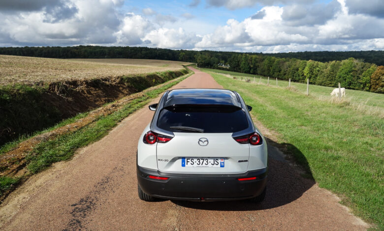 Jer MX-30 je interesantan automobil, zaista sam želeo provesti s njim jedan duži period, posebno u ova tmurna vremena, od kako je u Francuskoj uvedeno vanredno zdravstveno stanje. Da, samo pres centar Mazde je na dobrih 50-ak kilometar od mog mesta stanovanja, od čega više od polovine otpada na auto-put, koji je, kao što znamo, rak rana svih električnih automobila. Ukoliko proizvođač navodi recimo 300 km autonomije, upotrebom istih ova se prepolovi, što znači da s ovom Mazdom, bez naknadnog punjenja, mogu samo da odem do kuće i da se vratim! Malo, no ovo su ekstremni uslovi koji ne odgovaraju profilu prosečnog vozača, posebno ne onog koji kupuje električni automobil.