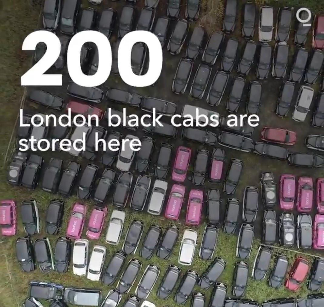 Fotografija koja je obišla svetske medije je stigla sa objašnjenjem da je 20% taksi vozila parkirano iz nekoliko razloga. Zahvaljujući epidemiji virusa korone veliki broj ljudi radi od kuće i ne mora da putuje u kancelarije, ali naravno, opao je i broj turista koji posećuje Britaniju svake godine.