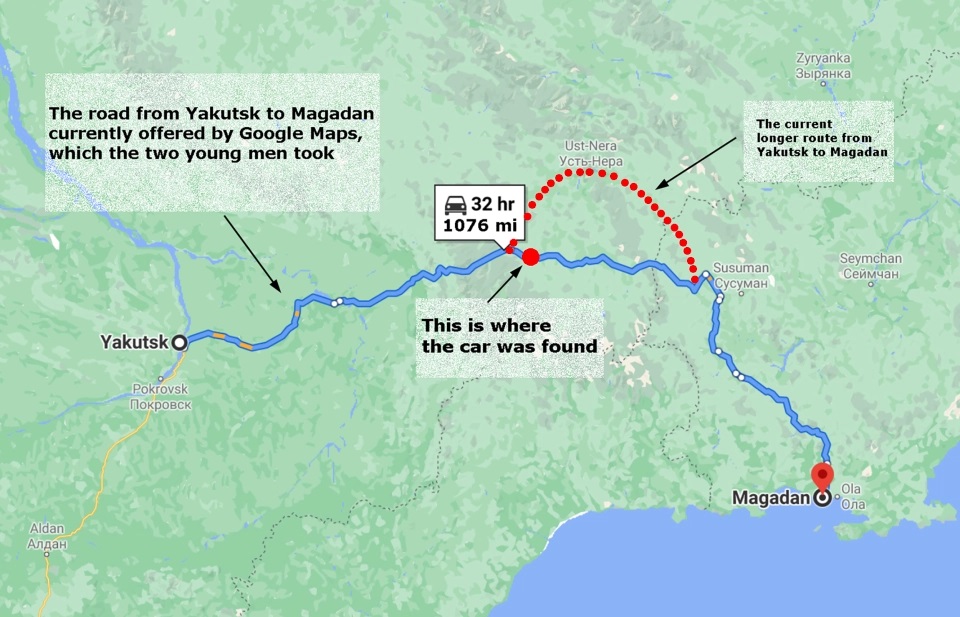Kako prenosi britanski Sun, Justinov i Istomin su koristili Guglovu aplikaciju za mape i dobili su uputstvo da skrenu sa glavnog puta i koriste „prečicu“ koja je na papiru bila za 160 kilometara bliža. Ova odluka će se pokazati kobnom pošto je „prečica“ zapravo bio put koji nije u upotrebi još od sedamdesetih godina prošlog veka.