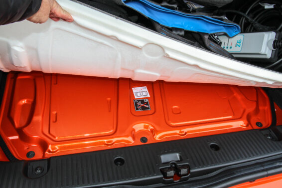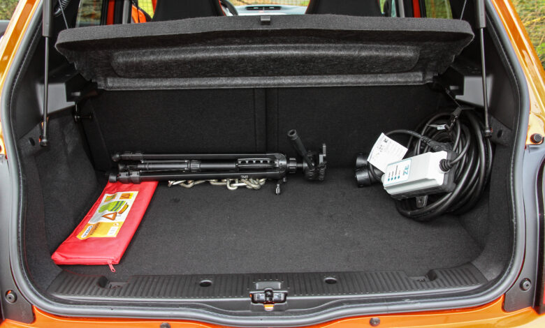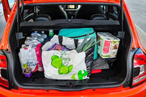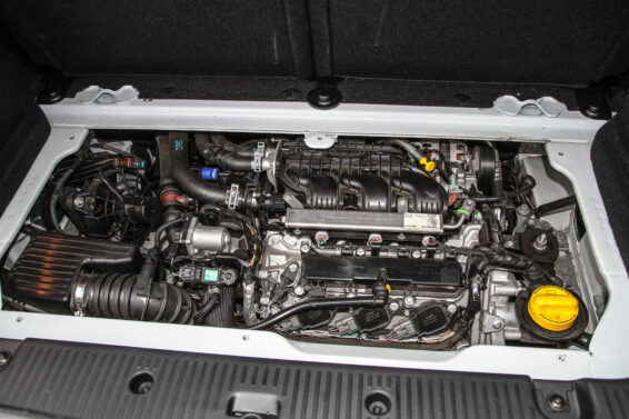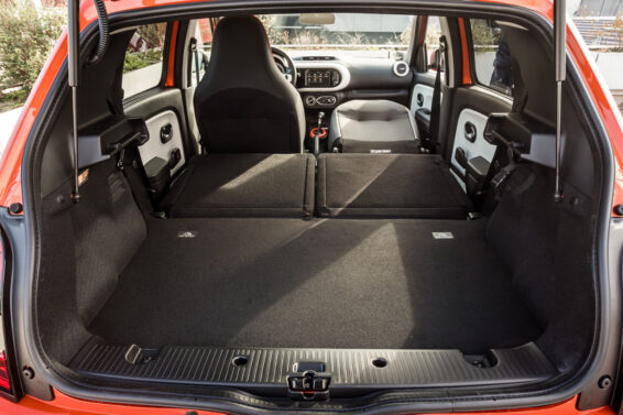 Sva sreća kod električne izvedbe toplota od motora se ne prenosi na zadnju klupu i stvari u prtljažniku, naravno nema ni vibracija i buke kao kod trocilindarskog benzinca. Bez zadnje klupe na klizačima, kao u prethodnim generacijama, ograničen je i prtljažni prostor, Twingo 3 mora se zadovoljiti sa 219 litara, odnosno samo 188 litara kada se poveća nagib naslona. U prvom slučaju je praktično pod uglom od 90°, i kao takav neupotrebljiv za iole udobnije putovanje. Kao i kod termičke verzije ispod plastične prednje haube pronalazimo bočice s kočionom tečnošću i za pranje vetrobranskog stakla (kod benzinca tu je akumulator), ali da bi se ova otvorila mora se posegnuti za uputstvom za upotrebu.