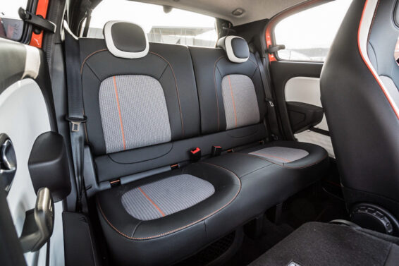 Što se tiče unutrašnjeg prostora, iskreno rečeno moglo bi ga biti i više. OK, kraći je za 10 cm od prethodnog Twinga 2, ali motor je „skriven“ ispod prtljažnika i međuosovinsko rastojanje je produženo za 12 cm (ukupno 2,49 m). Od ovoga koristi imaju isključivo vozač i suvozač, dok za putnike pozadi ostade veoma malo prostora za kolena, u svakom slučaju manje nego li u dve prethodne generacije. Osim toga, „nesrećnici“ pozadi moraju se zadovoljiti prozorima koji se mogu tek otškrinuti za 4-5 cm, dok „mesnata“ prednja sedišta klincima zaklanjaju pogled ka napred.