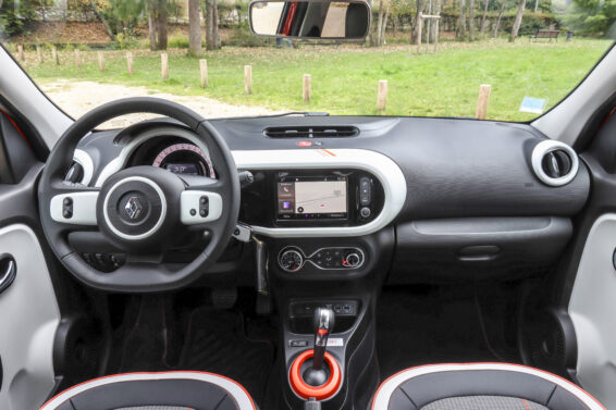 Po ugledu na spoljašnjost i unutrašnjost ovog malog Renaulta deluje „neozbiljno“. Dobro se sećam reči jednog prijatelja kada sam ga poslednji put vozio, u šali ga je nazvao „diznilend automobilom za Mikija“. Drugim rečima, enterijer je simpatičan, uz kvalitet i završni nivo vozila u A segmentu. Enterijer je isto tako blago osvežen prošle godine, pored platna na sedištima jedino je središnja konzola, pored ručice menjača, dobila omanji boks za sitnice i smartfon.