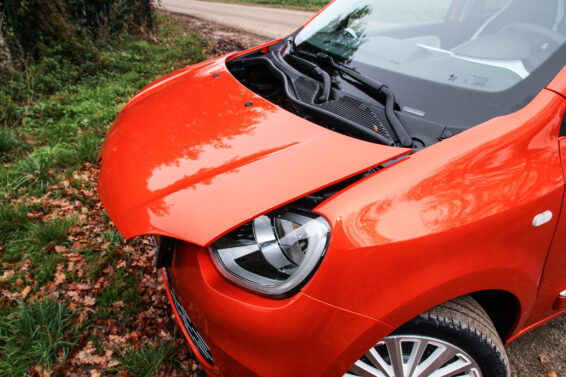 Ne podiže se kao kod ostalih „normalnih“ automobila, već se spolja treba odblokirati kontakt ključem, te povući dve integrisane ručice u prednjoj masci, kako bi skliznula tridesetak santimetara ka napred. No i pored svega navedenog Twingo je ipak modularniji od mnogih konkurenata. Jednostavnim obaranjem zadnjih naslona (deljivi u odnosu 50:50), dobija se jedan kubni metar prostora, a ukoliko se isto uradi i sa suvozačevim sedištem, eto ravne površine za transport predmeta do 2,3 m dužine. Sasvim dovoljno za transportovati rolnu tepiha ili rasklopljeni ormar iz čuvene švedske prodavnice nameštaja.