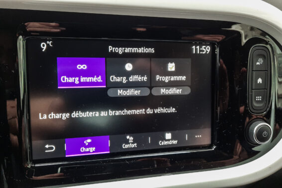 Pre ili kasnije baterije se ipak moraju negde napuniti, kao što znamo, što im je manji kapacitet sve se brže odvija. Njegov integrisani punjač ne podnosi više od 22 kW snage, no i to je dovoljno da se od 0-80 % baterije napuni za oko 1 h. Ukoliko se kod kuće ugradi Walbox od 7,4 kW za kompletno punjenje treba nešto više od 2 sata, odnosno do 15 časova standardnom monofaznom utičnicom od 2,3 kW. Jednom napunjen, Twingo dokazuje da električni automobili u ovom segmentu u potpunosti opravdavaju svoje postojanje. Drugim rečima, u startu su zamišljeni kao vozila prevashodno namenjena vožnji po gradu i predgrađu, retki su vlasnici koji se s njima“ zapucaju“ na duži put, zbog čega ograničena autonomija nije principijalni hendikep.