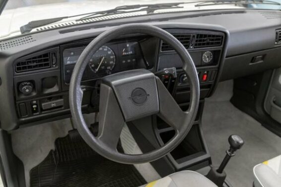 Što se enterijera tiče, može se reći da je zanimljiviji. Opel je osamdesetih i devedesetih ugrađivao odlična sedišta, čak i u baznim paketima opreme, koja uvek pružaju dobru bočnu potporu. U ovoj Asconi imaju zanimljiv dezen, u klasičnim bojama Opela – par nijansi sive i jedna nijansa žute. Volan je standardni, sa dva kraka, klasična instrument tabla bez obrtomera. Radio aparata nema, ali se lako može ugraditi. Pažnju privlači klasični analogni sat na sredini prednje konzole, pored „radija“. Možemo da napomenemo da su tu klasične poluge za ventilaciju, čak i sajla za povlačenje sauha.