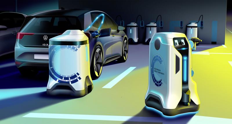 Dodatno, odeljenje Volkswagen Group Components razvilo je robote za punjenje koji pune automobile na parkiralištima. To je jedan od načina da se nadoknadi nedostatak utičnica. Svaki robot je opremljen kamerama, laserskim skenerima i ultrazvučnim senzorima. Zapravo se kreće poput autonomnog vozila i vuče prikolicu opremljenu mobilnim uređajem za skladištenje energije.