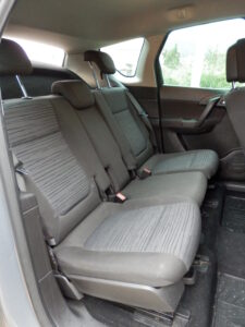 Zadnja sedišta su sastavljena od tri pojedinačna, mada ono srednje ne bih nazvao sedištem. Spoljna sedišta su na klizačima i mogu se pomeriti unapred, kako bi se povećala zapremnina gepeka (tad je potrebno srednje spustiti).