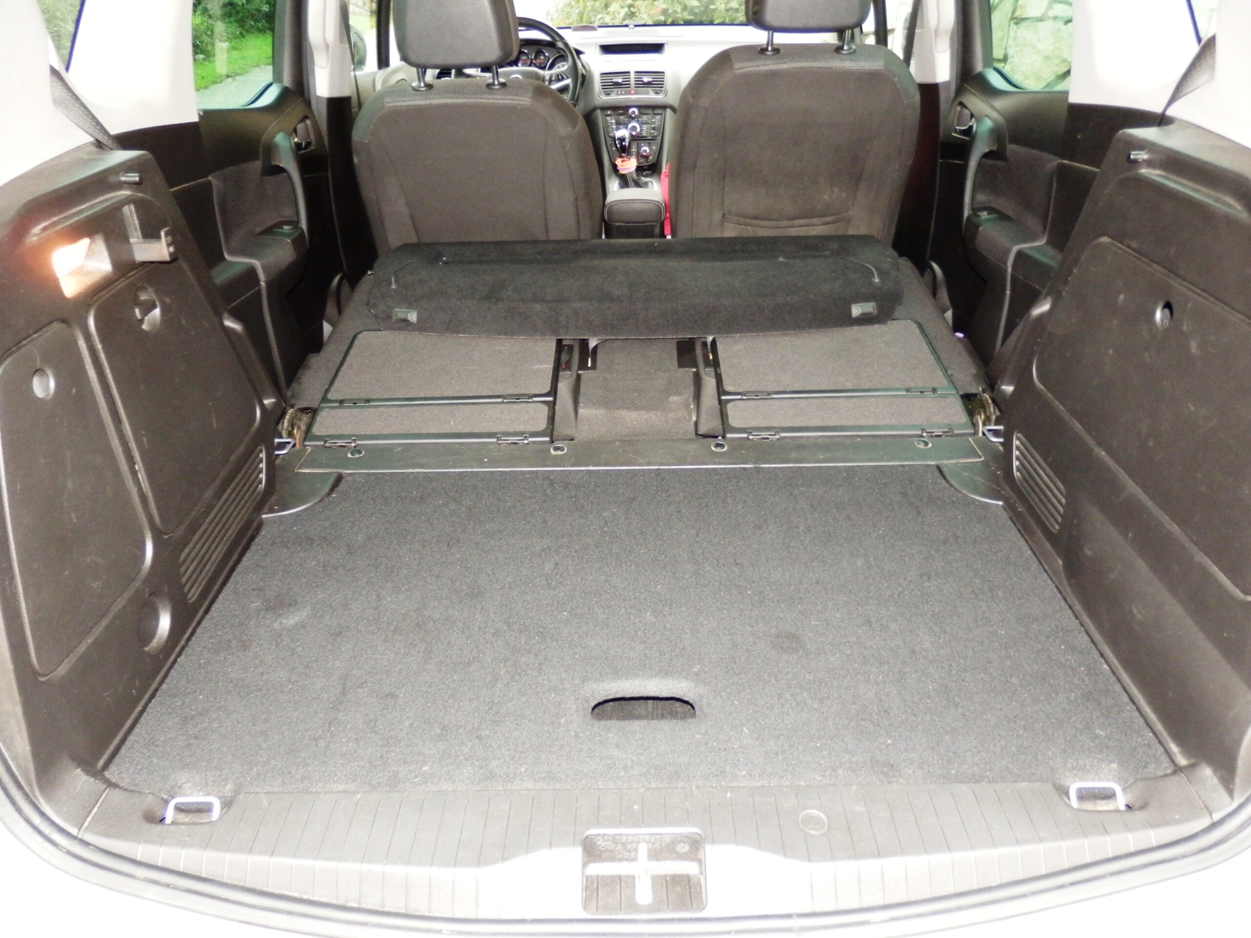 Gepek je pravilnog oblika, Opel kaže skoro 400 litara zapremine, koji se dobijaju kada se polica gepeka spusti u donji položaj. Ja imam rezervni točak – „ćopavac“, i set dizalice i alata, dok oni bez te opcije imaju dodatni, tapacirani, prostor za odlaganje u podu.