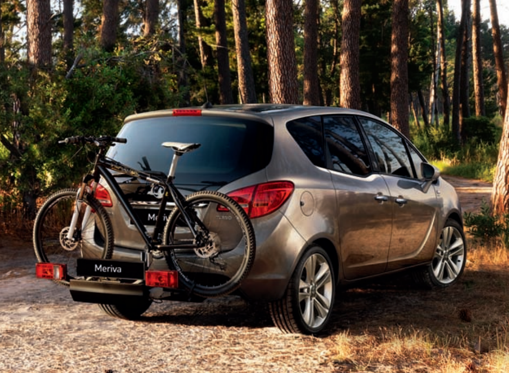 Opel je na ovoj Merivi ponudio i integralni sistem za prevoz bicikala ugrađen u zadnji branik, što verujem da je zanimljiva opcija ljubiteljima rekreativnog biciklizma (videti donju fotografiju).