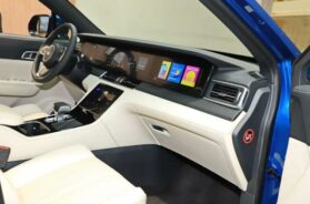 Kako je vozilo povezano sa internetom, filmove i video zapise možete gledati i na ekranu suvozača, na koji način ovaj sistem podseća na veliki iPad. Obratite pažnju i na okrugli, debelo izrezani dizajn trube sličan dizajnu nekih evropskih luksuznih marki.
