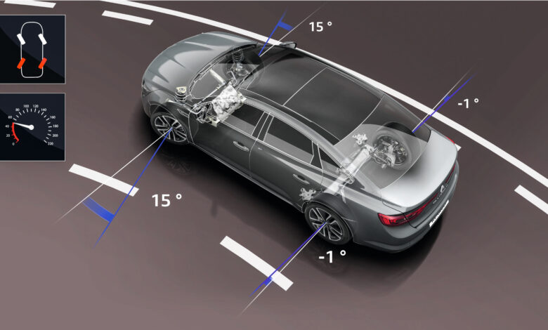 Naravano da u ovakvim okolnostima nema ni govora o nekakvim dinamičkim kvalitetima, još manje o čuvenom sistemu 4 Control (doplata za Intens 1.500 evra, u paru s elektronski kontrolisanim amortizerima). Verujem da nema potrebe ponavljati se i objašnjavati u detalje da se zadnji točkovi, do određene brzine, zaokreću u kontra smeru, odnosno s njenim rastom u istom pravcu kao i prednji. Prilikom temperamentne vožnje ovo evidentno pomaže Talismanu da se bolje postavi u krivine, dok se u gradskoj vožnji znatno smanjuje prečnik okretanja (11,6 bez 4Control, odnosno 10,8 metara s njim).