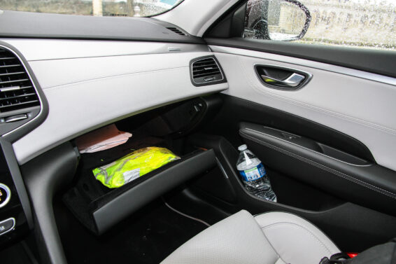 Za upravljačem malog prečnika, vozač se oseća prijatno, posebno kada su i sedišta presvučena kvalitetnom kožom. Poseduju snažne bočne oslonce i sva moguća električna podešavanja, plus grejanje i ventilaciju. Nedostatak preglednosti unazad nadoknađen je kamerom i senzorima (postoje čak i bočni), odnosno naslonima za glavu na zadnjoj klupi s dve pozicije (vertikalna i horizontalna). Uzevši u obzir da se radi o limuzini, čak je i praktični aspekt za pohvalu, što znači da boksova i polica za odlaganje sitnica ne nedostaje. U vrata staju flaše od 1,5 l, a u centralnu konzolu dve limenke i još mnogo toga u naslon za laktove između sedišta.