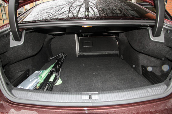 Ulazni otvor je relativno skroman, a da bi se dohvatili predmeti iz dubine, mora se zaroniti u njegovu unutrašnjost. Zadnji nasloni se po potrebi mogu oboriti, dok smo u dnu pronašli rezervni točak istih dimenzija. Njegova vrata otvaraju se pritiskom na minijaturno dugmence ispod znaka proizvođača (treba ga i zapaziti), ili komandom iz unutrašnjosti.