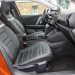Prvo zapažanje, zajedničko za određene modele koji su postavljeni na ovoj platformi (2008 i DS3 Crossback), jeste značajno odstojanje od tla, da bi se ušlo u vozilo mora se visoko podići noga. Samim tim, vozačeva pozicija je blago uzdignuta, navodi se 7 cm više u proseku od standardnog hečbeka. Zahvaljujući ogromnoj amplitudi podešavanja sedišta, čak i ovaj moj kapitalac s slike lako je pronašao željenu poziciju.