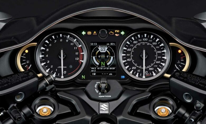 Nova Hayabusa je dobila i drugačiju instrumentalnu tablu koja kombinuje digitalno i analogno. Analogni su ostali obrtomer i brzinomer, dok je između njih smešten jedan TFT ekran u boji.