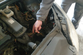 Daljim pregledom ispostavlja se da je iz automobila poskidana i elektronika: kompletni motorni ECU + BSI (Boîtier de servitude intelligent) + BSM + elektronika ključa. Isečen konektor kompresora klime i cevi klimatizacije. Isečen konektor senzora pritiska ulja. Svima vam je već jasno o čemu se radi i šta se desilo. Nestala čak i šipka za merenje nivoa ulja.