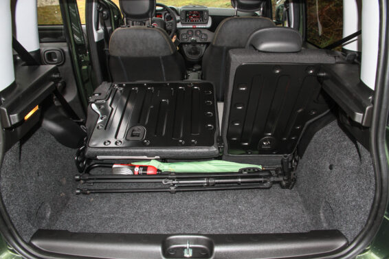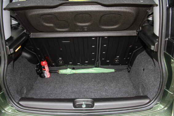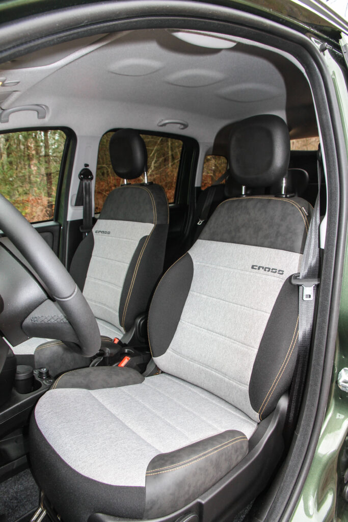 Naprotiv, kritiku zaslužuje instrument tabla, nedovoljno pregledna i sa podeocima „od oka“, kao i nasloni za glave tvrdi k’o drvo. Panda Cross poseduje od opreme automatski klima uređaj, multimedijalni sistem Uconnect s ekranom od 7 inča (osetljiv na dodir), radar protiv sudara (samostalno koči do brzine od 30 km/h), ESP, senzore pozadi za pomoć pri parkiranju, pomoć pri polasku na uzbrdici… Sam prtljažnik adekvatan je spoljašnjim dimenzijama, nije velik (225 litara) ali je za uzvrat praktičan i upotrebljiv. Zadnji nasloni podeljeni su na 2/3, njihovim obaranjem dobija se 845 litara korisnog prostora.