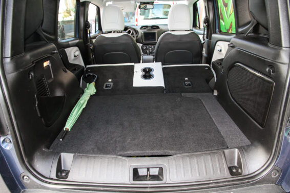 Što se tiče spoljašnjih dimenzija i unutrašnjeg prostora recimo da je po pojavljivanju 2014. godine važio za najvećeg u segmentu gradskih SUV modela, čak je s 4,24 m pretendovao na superiorniju klasu. U međuvremu pojaviše se neki novi hamburger klinci, koji su se izdužili i na 4,3 m (Peugeot 2008), tako da Renegade nije više referenca na ovom polju. No zahvaljujući kubičnim forama unutrašnjost je prostrana, najveću korist od njih imaju glave putnika. Nema tog delije koji se ne može komotno smestiti za upravljač, posebno jer je amplituda podešavanja izuzetno velika.