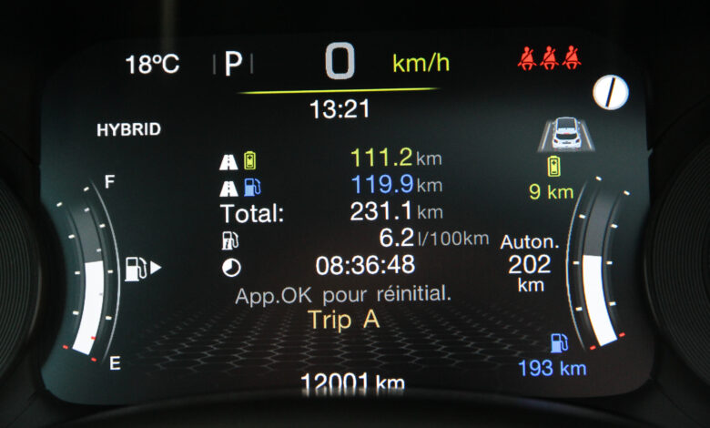 Šta zapravo obećava Jeep? Ni manje ni više do autonomiju na električnu energiju od 50-ak kilometara i prosečnu potrošnju od par litara. Naravno u idealnim uslovima, u praksi je ovo teško izvodljivo… U svakom slučaju, po preuzimanju vozila putni računar pokazao je tačno 50 km u 100% električnom režimu i ukupnu autonomiju nekih 450 km. U prvom slučaju nisu nas mnogo slagali (pre će biti dobrih 40-ak kilometara), baterije kod Renegade 4xe zaista su sposobne za tako nešto, pod uslovom da pretežno vozite po gradu i nikada na auto-putu.