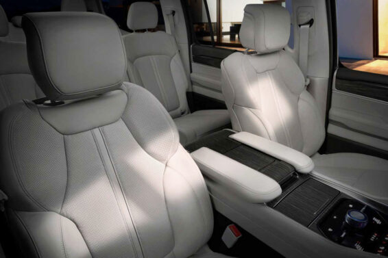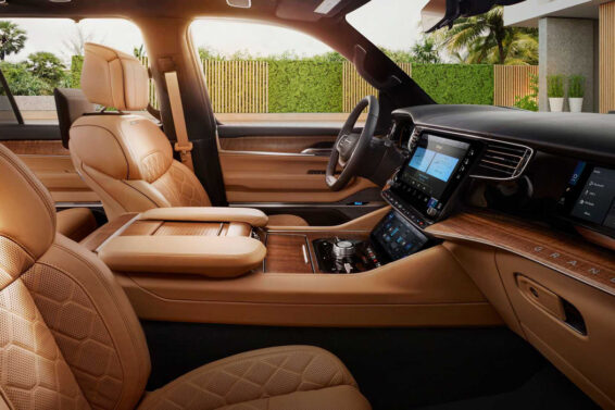 Grand Wagoneer se očiglednije izdvaja u odnosu na bazični Wagoneer u putničkoj kabini koja je očigledno prestižnije izvedena. Primetna je obilna upotreba dodataka od drvne mase i aluminijuma, dok se nappa koža koristi samo u startnoj varijanti Grand Wagoneera, dok je za one namerne da se intenzivnije isprse „s pare“, predviđena kvalitetnija kožna prekrivka.