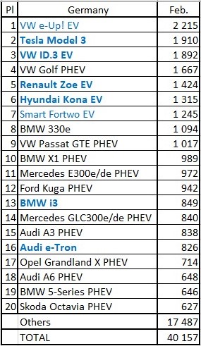 U Nemačkoj je u prethodnom mesecu prodato 40.157 baterijskih automobila, što je rast od 127% naspram februara prošle godine.