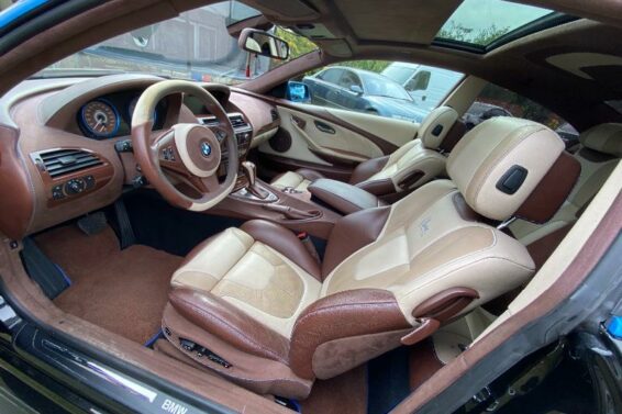 U putničkoj kabini kupea su montirana sedišta iz modela BMW M6, kao i redizajnirani obruč upravljača. Tu su i akcentni detalji na kontrolnoj tabli, ali su vidljivi i na karoseriji. U plavoj su boji, i izvedeni su u duhu ideje koju su promovisali elektrifikovani Bavarci, što je nekako nespojivo s V8 srcem koje kuca pod haubom i koje, potpuno logično s obzirom na godinu proizvodnje, ne može da računa ni na kakvu ispomoć električnog motora.