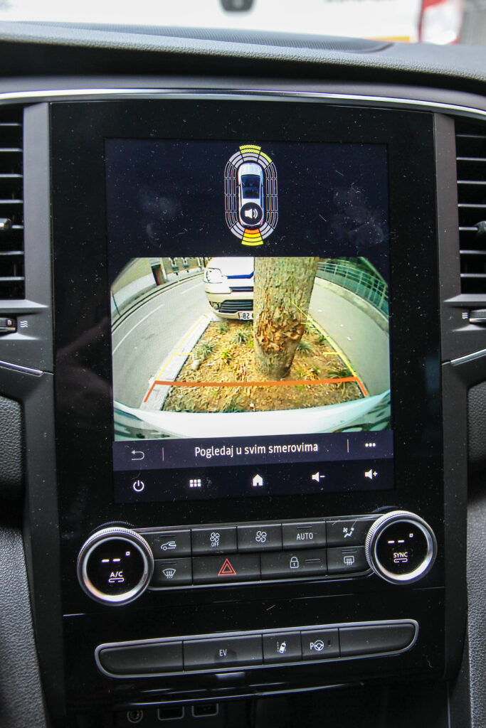 Za razliku od hečbeka kod karavana je vidljivost unazad bolja, za svaki slučaj tu su svi mogući senzori i kamera za pomoć pri parkiranju. Uzgred rečeno, naš Megane sposoban je i samostalno obaviti tu toliko komplikovanu operaciju, posebno za pripadnice lepšega pola (malo muškog šovinizma, tek šale radi), no kao i svima nama i njemu se desi da ponekad loše proceni. Zadnje desna felna par puta je bila zgnječena uz ivičnak, odnosno drugom prilikom parkirao se predaleko od njega.