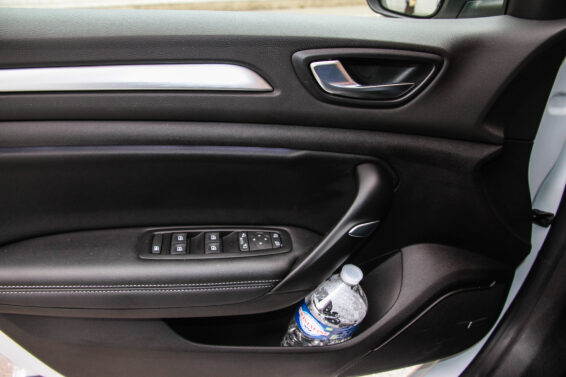 Enterijer odiše ozbiljnošću, što je pojačano navedenim sedištima, u našem slučaju u kombinaciji platno/vestačka koža. Vozačevo radno mesto je bez zamerki, sa dobrim osloncima za laktove. U desnom je ujedno veliki boks, dok u vrata staju „test“ flaše od 1,5 litara. Zamerke se odnose uglavnom na komande za podizače stakla, smeštene previše unazad. Bože koliko me ovo nervira, svaki put ruka se mora neprijatno saviti u laktu i zglobu, kada se ovi požele otvoriti/zatvoriti.