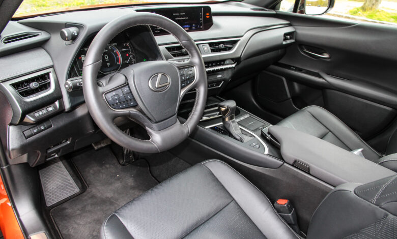 Zapravo svi „vidljivi“ delovi enterijera su od kvalitetnih materijala, dok je centralna konzola blago zaokrenuta ka vozaču. Zamerke možemo uputiti ne preterano brojnim i kapacitetnim boksovima i policama za odlaganje sitnica, Lexus očigledno nije želeo da ovaj „mali“ SUV pretvori u minivan, što se odnosi i na unutrašnjost. Prostor za putnike pozadi je zaista skroman, bez obzira na 4,5 dužine UX bi pre uporedio s recimo jednim Peugeotom 2008, nego li 3008-icom!