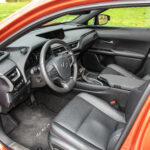 Mislim pre svega na zadnji deo, s spojenom LED svetlosnom grupom, koja se proteže čitavom širinom petih vrata. Kako i priliči jednom SUV-u sve je začinjeno prorezima za točkove od crne brut plastike, koju pronalazimo na pragovima i donjem delu zadnjeg branika, što se pokazalo kao znatno praktičnije rešenje od obojene plastike. Inače forma spomenutih proreza za zadnje točkove i svetlosne grupe nije samo za „šminku“, već i u cilju postizanja što bolje aerodinamike. Ukratko, ima nešto u ovom UX što ga distancira od ostalih SUV modela, iako je na kraju teško pronaći konsenzus, ili ga volite ili ga prezirete. Kome je do originalnosti, računajući i stil enterijera, eto prilike da se distancira od „klasičnih“ nemačkih predstavnika…
