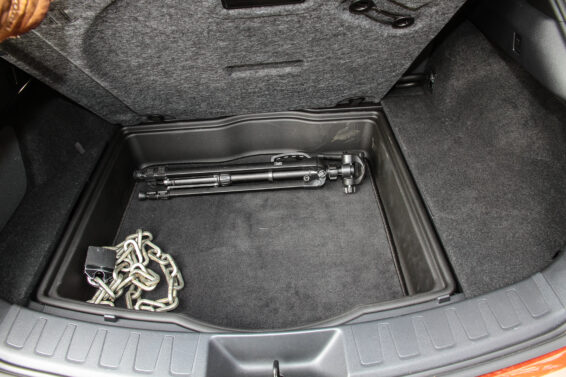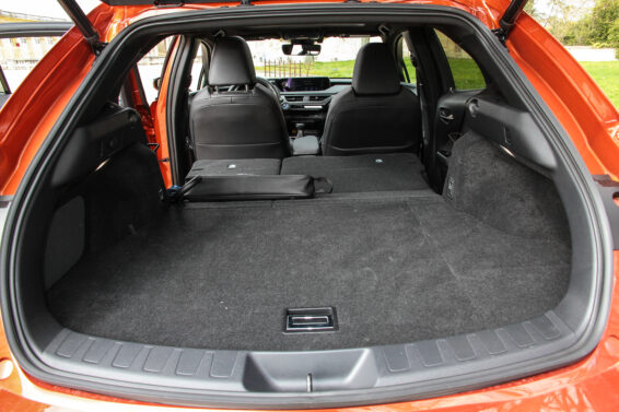 Sva sreća pa su inženjeri predvideli mekani pokrivač, kada se ubaci nešto više stvari ovaj se adaptira njima, dok se obaranjem zadnjih naslona dobija potpuno ravna površina. Podrazumeva se da su peta vrata s električnom asistencijom i da se mogu otvoriti/zatvoriti daljinskom komandom, odnosno podvlačenje noge ispod branika. Ukoliko ste se zapitali ima li prostora za rezervni točak „ćopavac“, odgovor je negativan, skromna zapremina rezultat je hibridne koncepcije, odnosno baterija u dnu prtljažnika, računajući i klasičnu bateriju od 12V. Za vlasnike kojima treba više, Lexus je predvideo aerodinamični krovni prtljažnik od 300 litara, naravno uz doplatu!