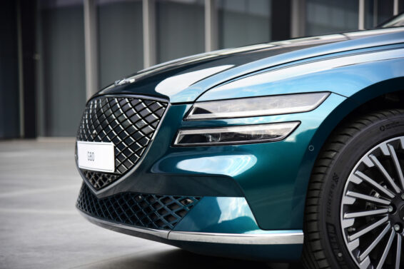 Sa vizuelnog aspekta nije lako pronaći razlike u odnosu na standardni G80. Prva, i ujedno i najveća razlika jeste drugačija „zatvorena“ maska hladnjaka. Ona podseća na onu koja se može naći na izvornom modelu, ali nema otvore za strujanje vazduha, jer se ipak radi o električnom četvorotočkašu kojem to nije ni potrebno. Korejci ističu da su u kabini na više mesta upotrebili reciklirane materijale, kao i da su u ponudi samo dve boje: Matira Blue i Dark Green.