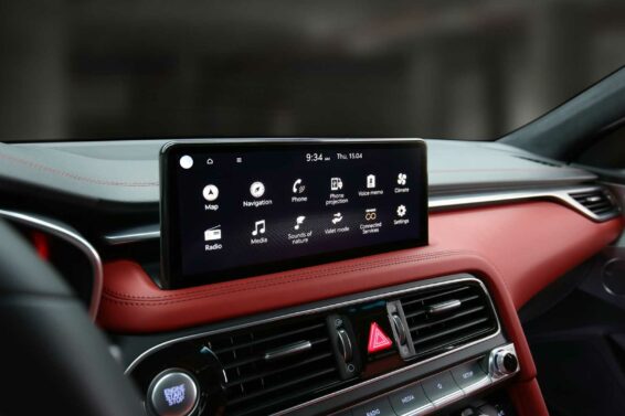 Sve u svemu spolja se radi o vrlo skladnom i dopadljivom četvorotočkašu. Unutar kabine Genesis je pokazao da je dobro oslušnuo tržište. Nema sivila ni previše tamnih boja, a crvena koža koja je primenjena u izobilju daje novu kontrastnu notu čitavom enterijeru. Postavka je naravno ostala ista kao i kod standardne limuzine.