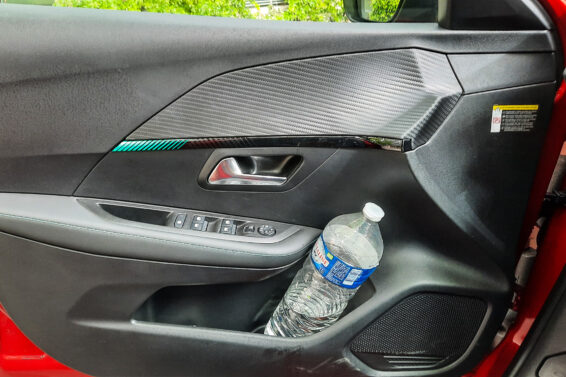 Za pohvalu je i praktični aspekt, u vrata i pregradak za rukavice staju flaše od 1,5 litara. Podešavajući naslon za laktove između sedišta skriva još jedan veliki boks, dok se svakodnevne sitnice mogu odložiti u dno centralne konzole, odnosno udubljenja za limenke. Predviđen je i pregradak za bežično punjenje smarfona, čiji poklopac, kada se otvori, služi kao oslonac za isti.