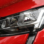 Dizajn je potpuno nov, svež, drugačiji od prethodnog 208, s kojim osim naziva ne deli više ništa. Podrazumeva se da je novajlija pokupio izvesne stilske elementa od veće braće, gde pre svega mislim na tri vertikalna led dnevna svetla i ogromne „očnjake“, koji duboko „grizu“ u branik. Ne za sve verzije, umesto spomenutih LED svetla voženi je posedovao klasične farove s halogenim sijalicama.