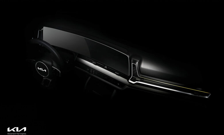 Fotografija iz enterijera ukazuje na veliki zakrivljeni ekran gde su smešteni i virtuelna instrumentalna tabla, ali i segment za kontrolisanje informativno-zabavnog sistema, sve po ugledu na električni EV6.