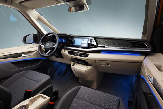 Ispred vozača su dva displeja, kao i u većini ostalih Volkswagenovih modernih vozila. Jedan od 12 inča predstavlja instrumentalnu tablu, dok drugi od 10 cola služi za kontrolu informativno-zabavnog sistema. Pored toga, Multivan ima i HUD, odnosno head-up displej.