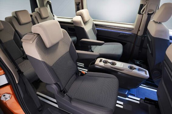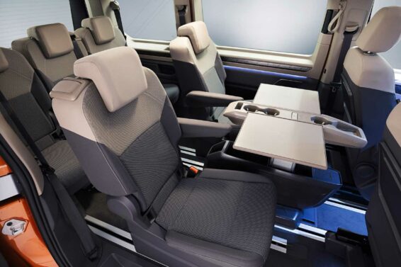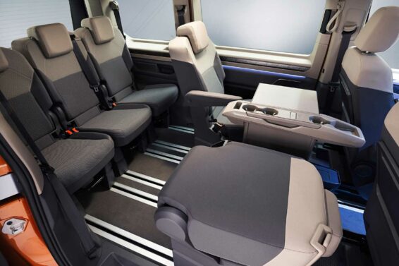 Naravno, prostrana kabina je bila i ostala vrlina ovog vozila. Multivan T7 raspolaže sa čak 4.053 litra tovarnog prostora. U standardnom izdanju sa trećim redom sedišta prtljažnik ima zapreminu od 469 l, dok sa uklonjenim zadnjim sedištima to brojka povećava na 1.844 l. Nemačka marka postavila je modularni sistem sedišta, pri čemu se ona iz drugog reda mogu rotirati za 180 stepeni.