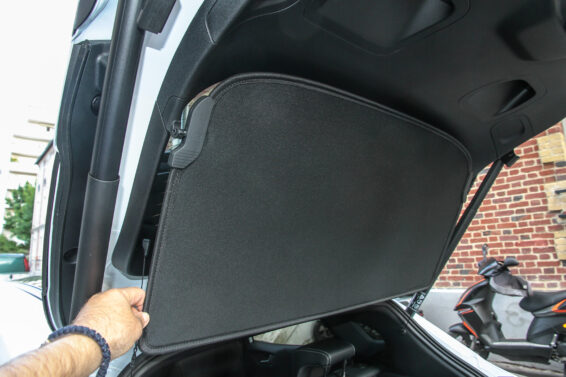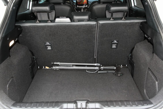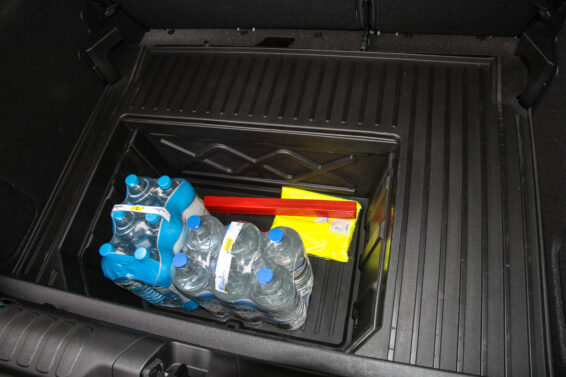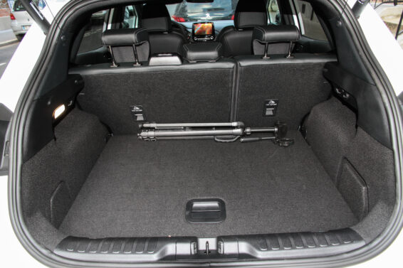 Sportista ili ne, poseduje ipak veoma pristojan prtljažnik i ogroman boks u dnu, zapremine čitavih 80 litara. Po mom mišljenju veoma je upotrebljiv, strpah u njega par paketa s vodom, koji se nisu ni pomerili prilikom višednevnog „jurcanja“. Inače peta vrata su s električnom asistencijom (opcija), retko brzo se otvaraju i zatvaraju i poseduju praktičan integrisan pokrivač prtljažnog prostora, koji omogućava jednostavan pristup stvarima. Rezervni točak nije predviđen, uostalom kolikih je dimenzija ni ne vidim gde bi stao!?