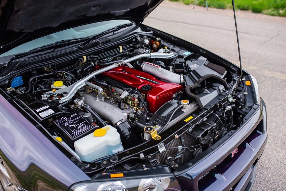Kao i svaki drugi R34, i ovaj pokreće 2,8-litarski turbobenzinac u konfiguraciji sa šest linijskih cilindara, a na papiru razvija 276 konjskih snaga. Kažemo „na papiru“ pošto je u Japanu tada postojao „džentlemenski dogovor“ da nijedan automobil neće imati više snage, ali ja javna tajna ona da je GT-R za oko 60 „grla“ moćniji.